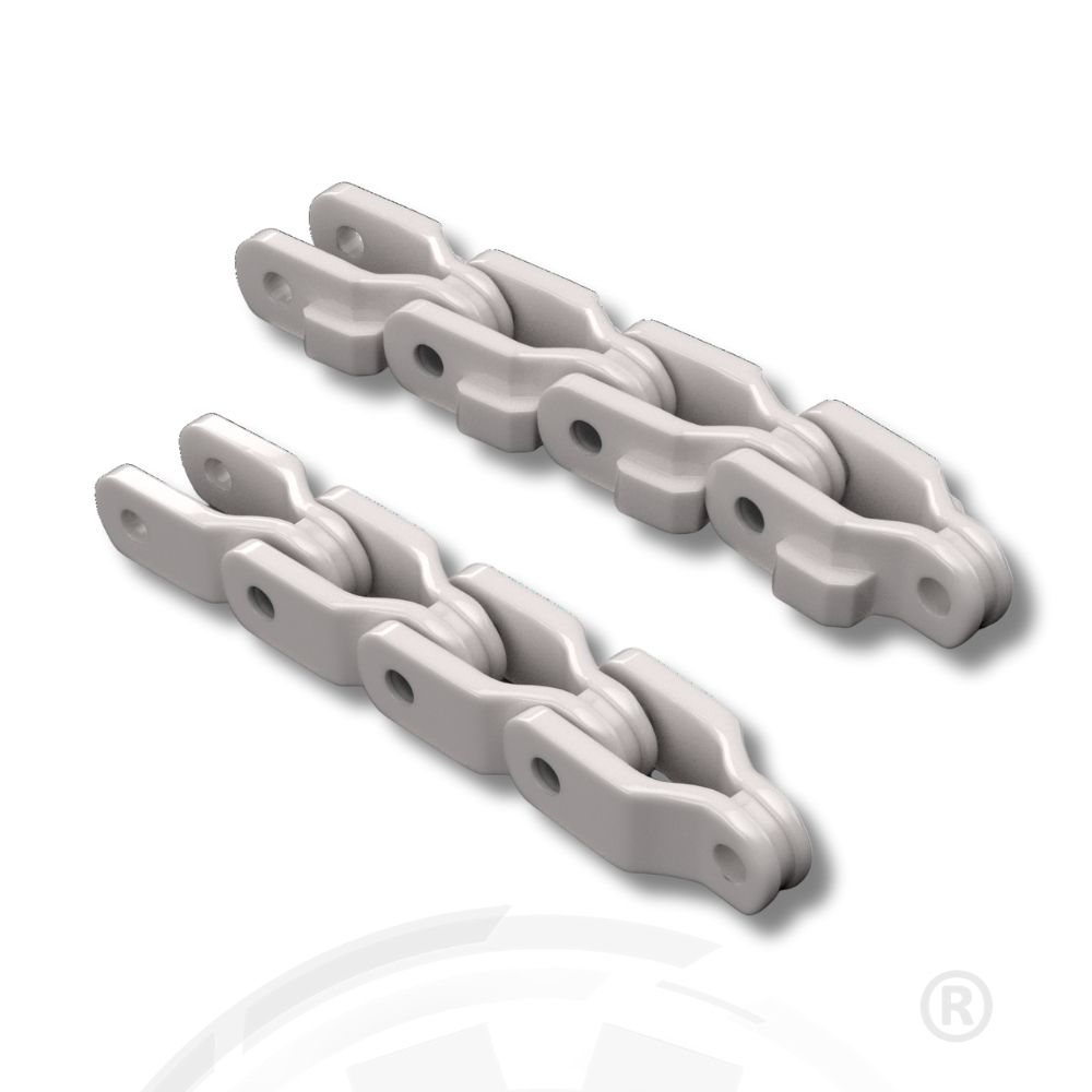 Cadenas a rodillos con aditamentos y accesorios personalizados, fabricadas bajo plano según las necesidades específicas de cada cliente