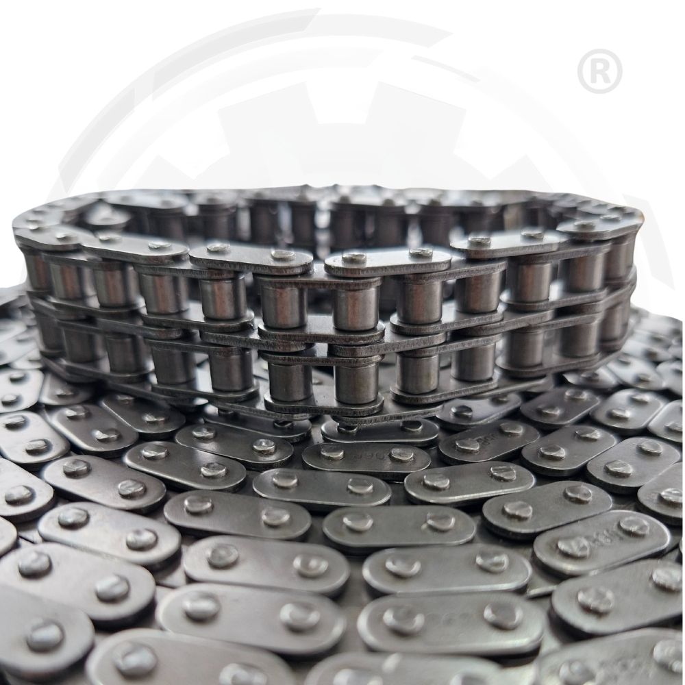 Cadenas de transmisión con rodillos que proporcionan un movimiento suave y eficiente. Ideales para una amplia gama de aplicaciones industriales que requieren precisión y confiabilidad.